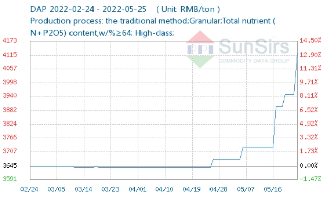 Theo Sunsirs, giá DAP giao ngay ngày 24/5 là 4.125 nhân dân tệt/tấn (618 USD/tấn), giảm 4,4% so với ngày trước đó. So với đầu tháng 5, giá DAP tăng hơn 12%.