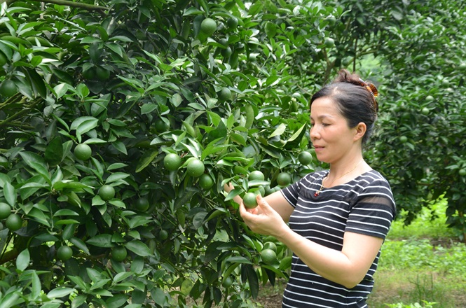 Mỗi năm gia đình chị Nguyễn Thị Phương, thôn 61, xã Yên Phú, huyện Hàm Yên (Tuyên Quang) đầu tư 70 triệu mua phân bón của Cty CP XNK Hà Anh để chăm sóc cam.